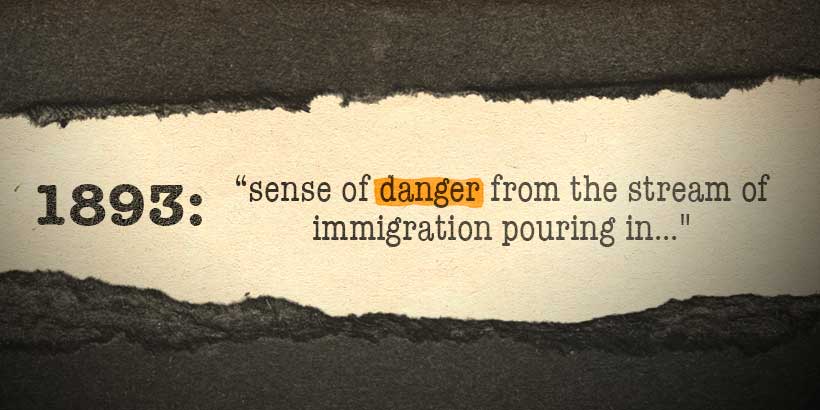 These people for the most part bring nothing but themselves, and in themselves are neither useful or desirable. The are of entirely different stocks from the original settlers and the earlier immigrants. They may indeed have longings for liberty, but they have no knowledge of what liberty is, how it may be secured, or how it should be used. They are mentally and morally degraded by century on century of oppression, of ignorance and misery. Unused to any sort of self-government, they are incapable of walking the paths of citizenship without leaning heavily on the arm of some kind of paternalism. They have just enough money to get them past the gates of Castle Garden and then are dumped down, a helpless and unassimilable mass, and expected to take care of themselves and to develop by some mysterious process into intelligent wielders of the American suffrage.
