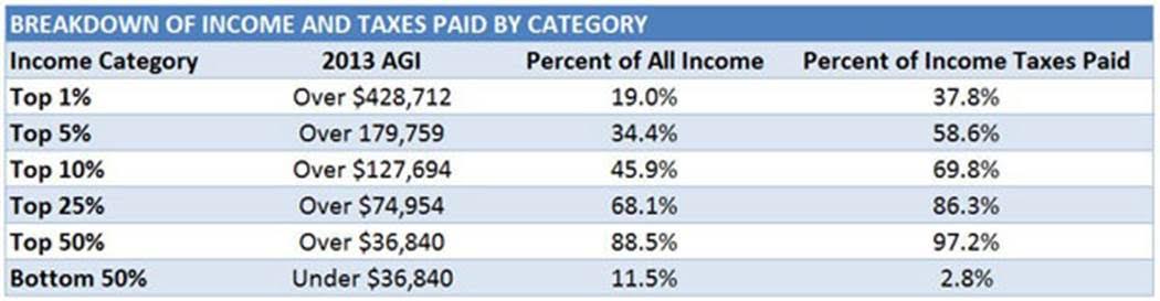 With the 2016 elections right around the corner, the familiar debate over tax policy and whether the rich — the “Top One Percent” — are paying their “fair share” has returned to the forefront.