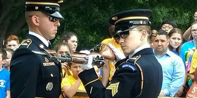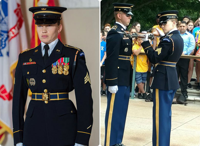 “My daily job is to do the changing of the guard,” she noted. “We have soldiers on leave right now, so I’m walking. There are multiple changers and multiple walkers. We come in at 5 a.m. for PT and then we get all our uniforms ready before the first ceremonial walk. We’re at work for 26 hours.”